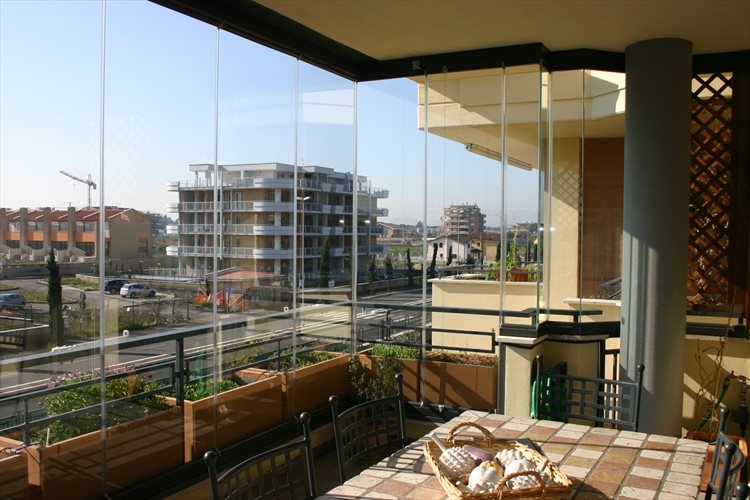 La chiusura in vetro WEESE è una vetrata scorrevole ad ante indipendenti: ideale in INVERNO per godere della luce naturale del sole, aumenta la qualità degli spazi, mantiene costante la temperatura interna, protegge dagli agenti atmosferici. Funzionale in ESTATE, consente di arieggiare gli ambienti con semplicità, facendo scorrere le ante ed impacchettandole in pochissimo spazio e tornando se necessario ad un'apertura totale. Il sistema tutto vetro WEESE è privo di montanti verticali, le ante indipendenti (vetro su vetro) scorrono su un binario e una volta aperte possono essere pulite dall'interno; il vetro temperato da 10mm garantisce il massimo della luminosità e sicurezza perché oltre ad essere molto più resistente di un vetro tradizionale è anche un vetro di sicurezza contro gli infortuni.